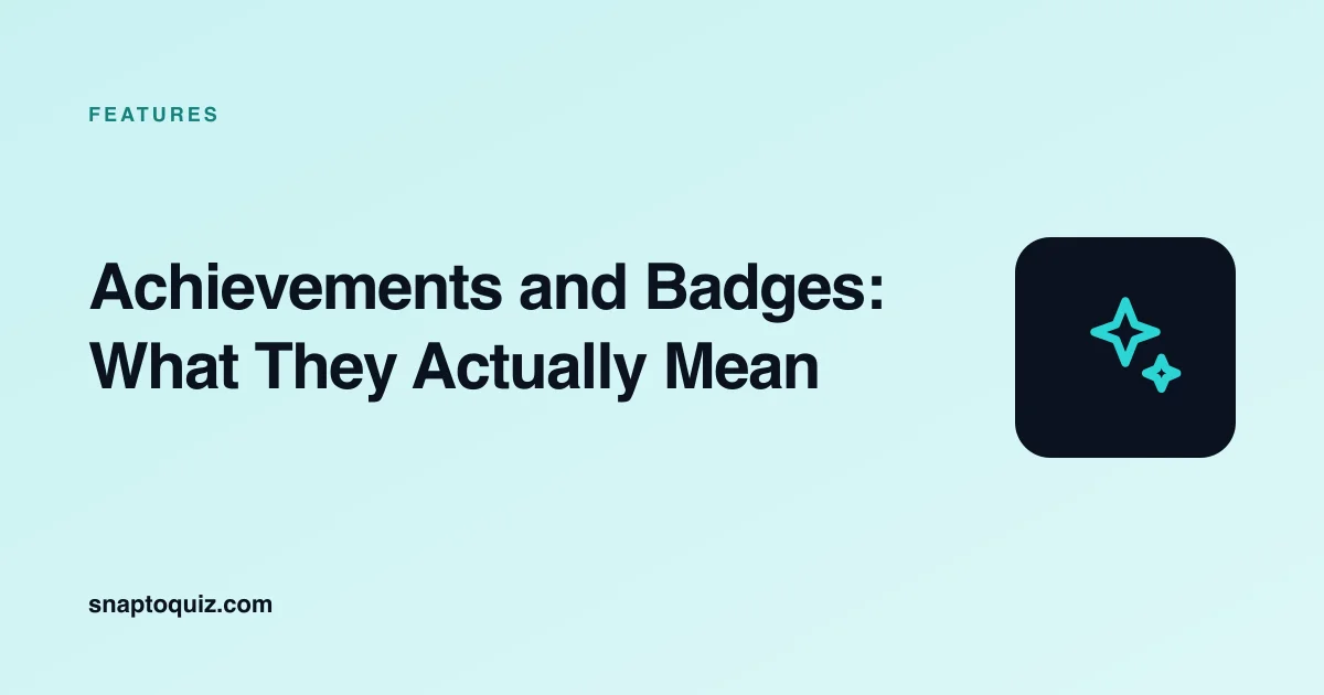 The full breakdown of SnapToQuiz badges — what each one means, how to earn it, and an honest take on whether badges are motivating or meaningless.
