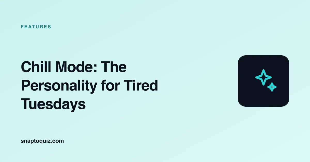 Chill Mode is the SnapToQuiz personality for low-bandwidth nights. Warm, non-judgmental, no performance required. Sample responses and when to use it.