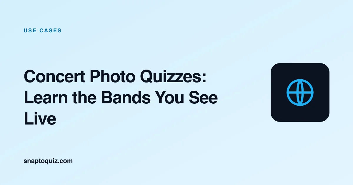 Snap the marquee, the setlist, or a stage shot and get an instant quiz on the band's discography and lore. Every show becomes actual knowledge.