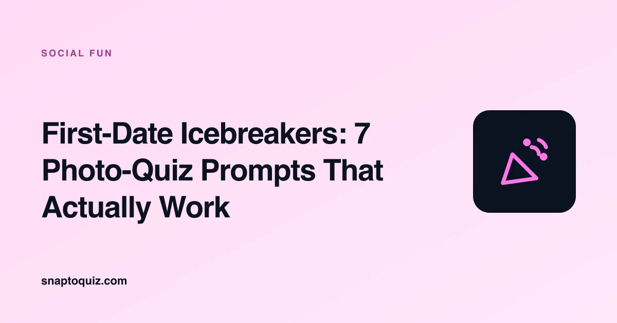 Seven specific photo-quiz prompts for first dates. How to use them, when to skip, and why shared-attention beats small talk every time.