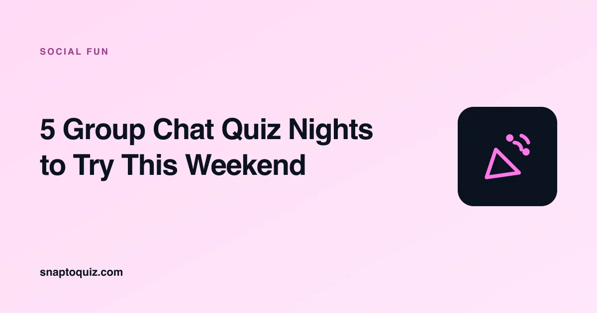 Five tested group-chat quiz night formats with real rules — concert photos, fridge contents, travel brackets, takeout nights, and 60-second chaos.