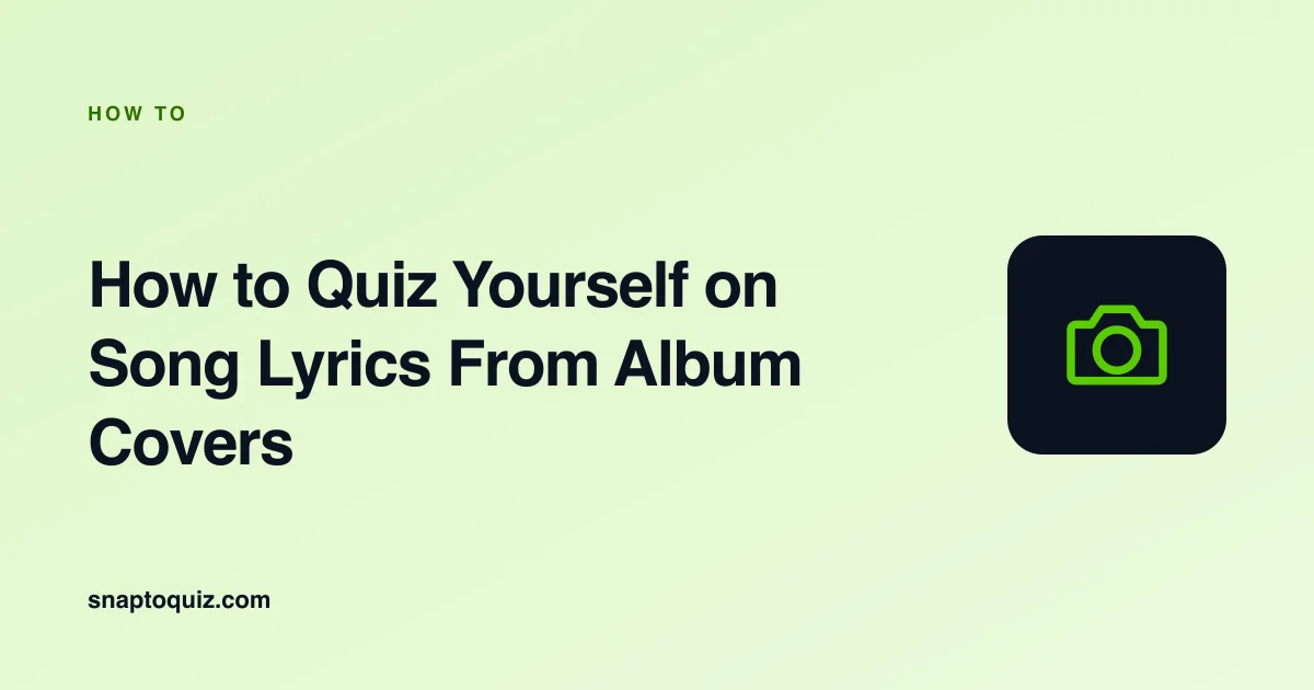 Snap an album cover, get a 5-question quiz on lyrics, tracklist, and backstory. The laziest way to actually know the music you already love.