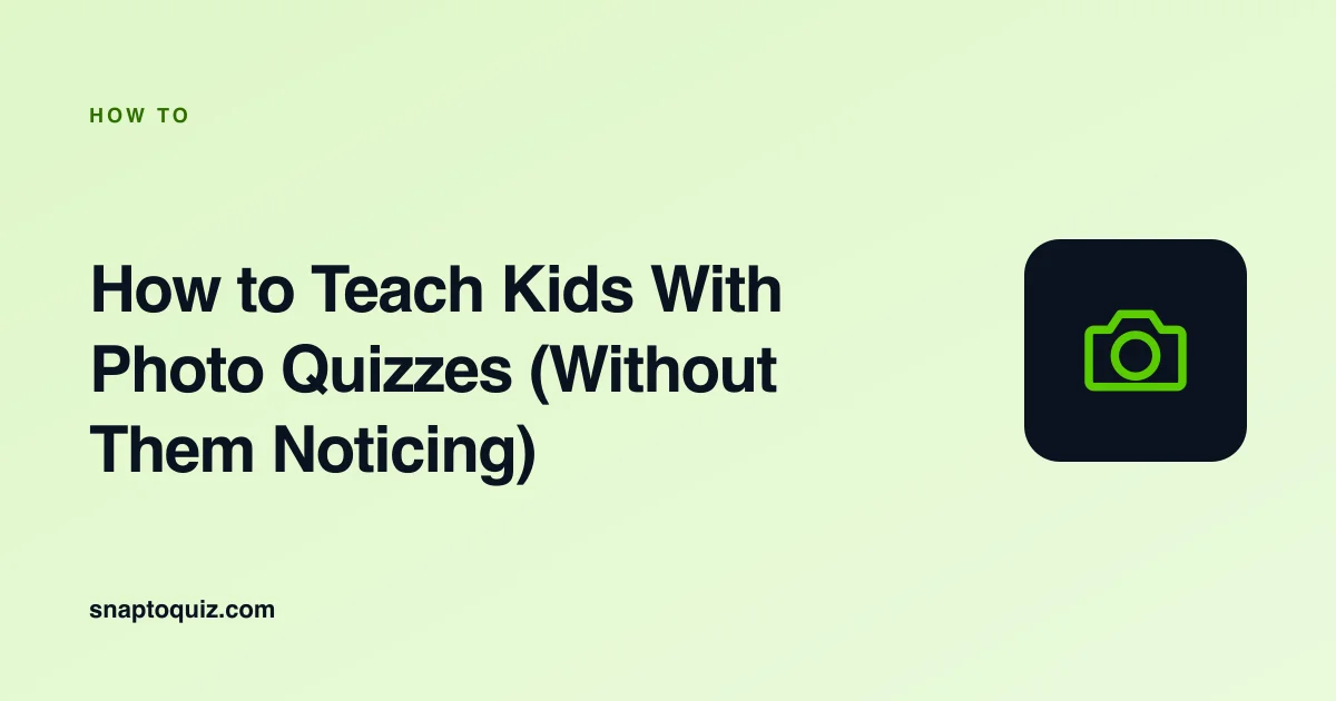 A practical guide to teaching kids 6 to 12 with photo quizzes. Let them pick the subject, keep sessions short, and the learning slips past their radar.
