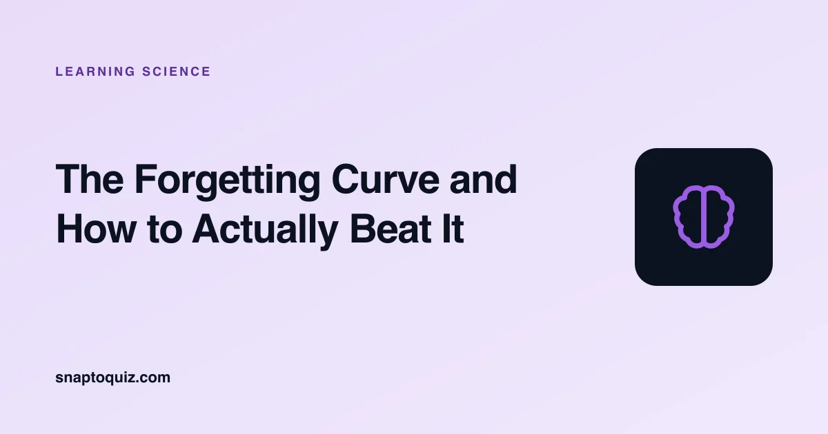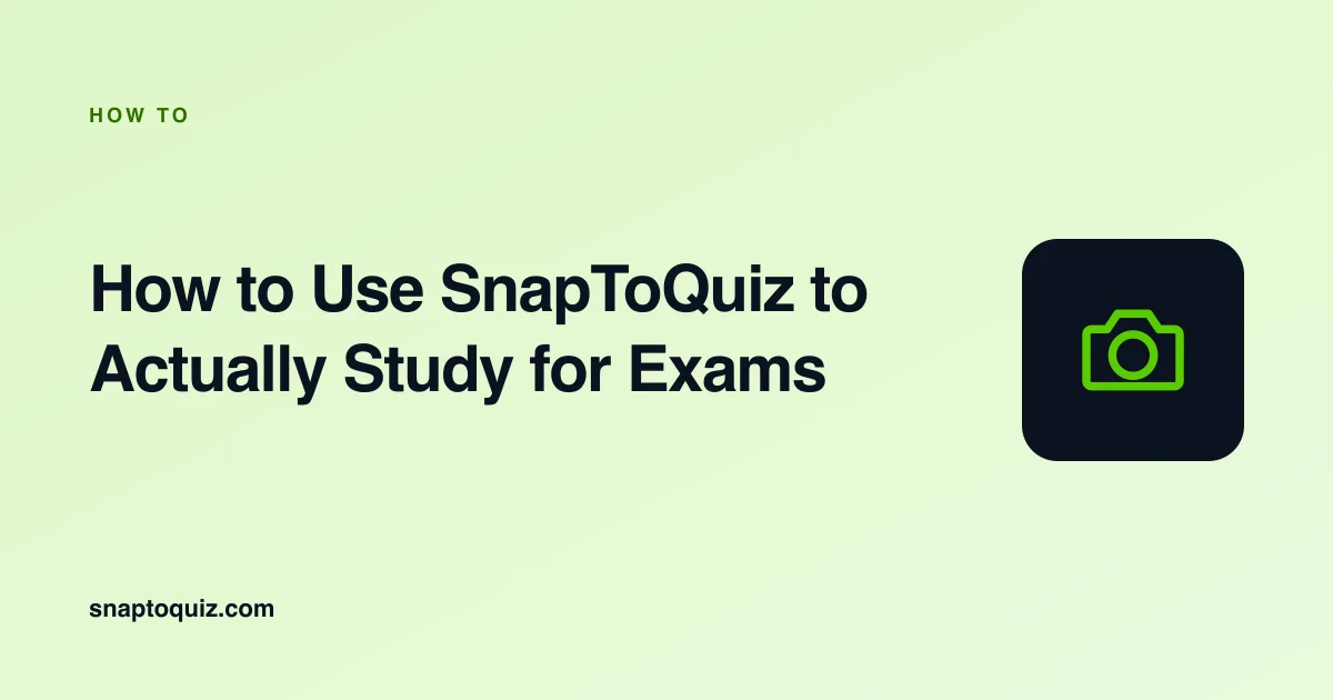 Snap a page, play the quiz, re-snap the bits you bombed. A real exam study workflow that beats re-reading, built around retrieval practice.
