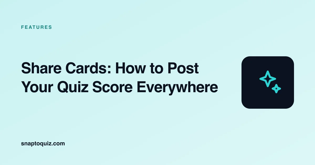 Auto-generated, brand-styled, Instagram-ready. How share cards work and the right moments to post your SnapToQuiz score.