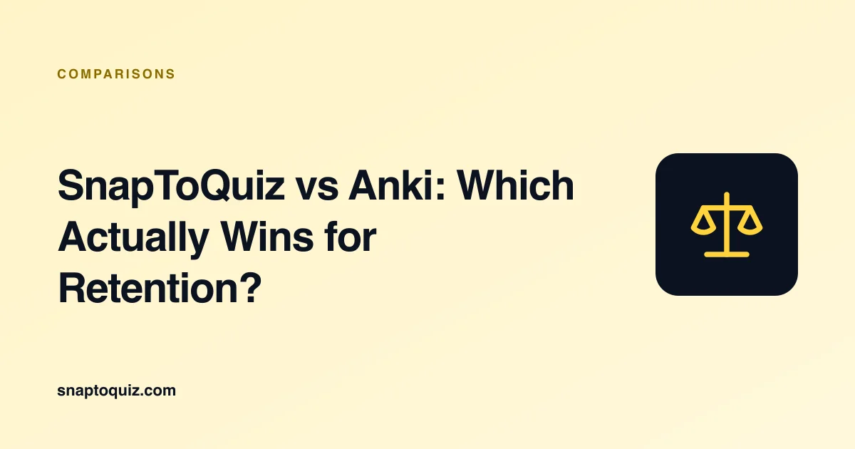 Honest comparison of SnapToQuiz and Anki for retention. Spaced repetition vs contextual snapping. Why serious learners actually use both.