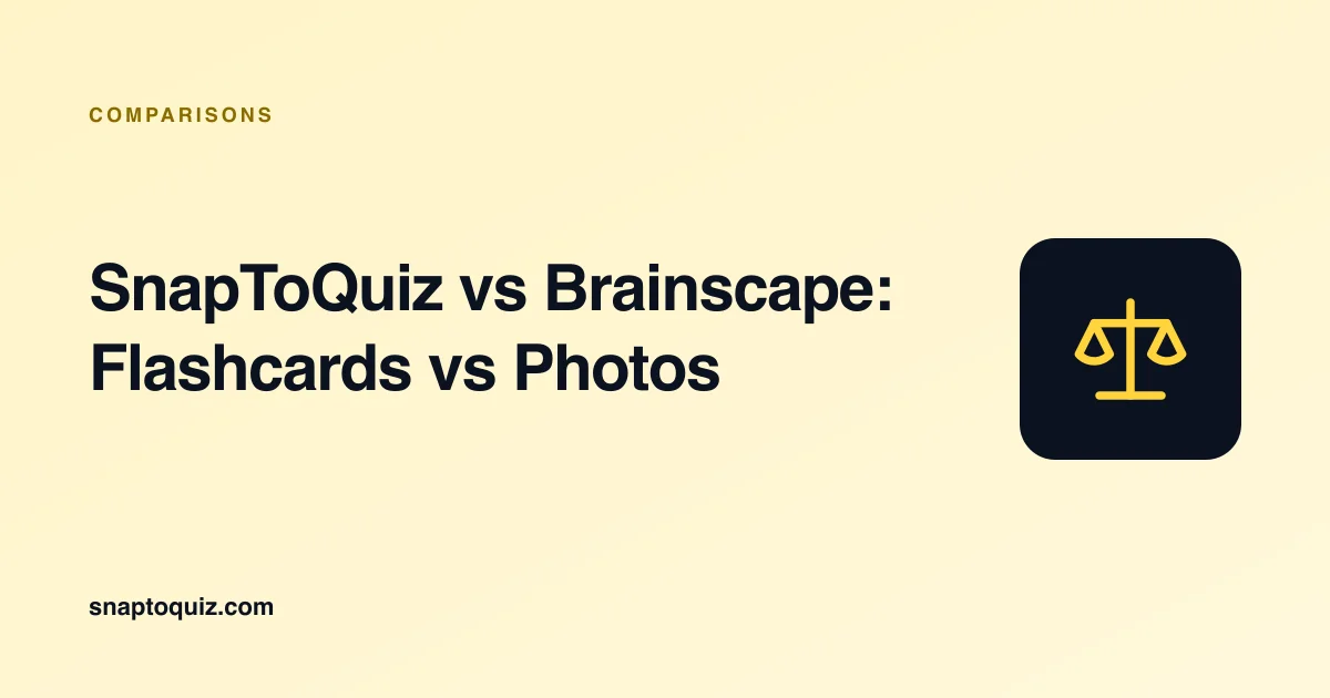 Honest side-by-side of SnapToQuiz vs Brainscape. Photo-driven curiosity vs text-flashcard spaced repetition. Which one wins, and when to use both.