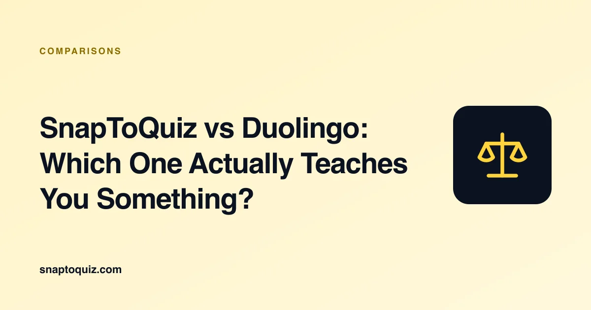 Duolingo wins for structured language courses. SnapToQuiz wins for anything visual. An honest comparison of what each tool actually teaches.