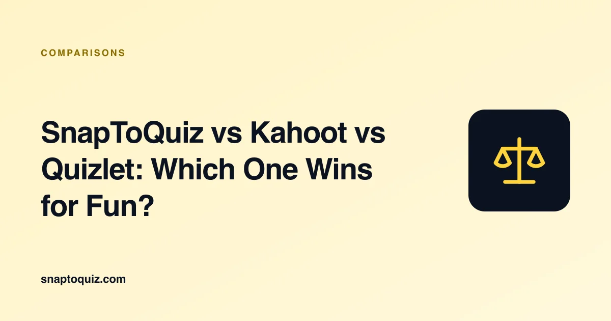 Honest comparison of SnapToQuiz vs Kahoot vs Quizlet. Which wins for solo play, classrooms, memorization, and fun? A fair side-by-side.