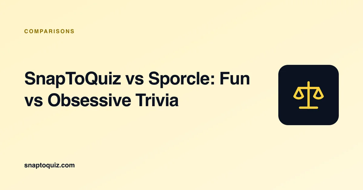 Honest comparison of SnapToQuiz vs Sporcle. Photo-driven curiosity vs community-built list grinding. Which one wins for your actual use case?