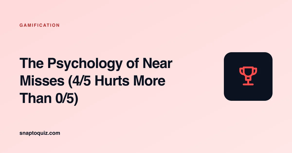 The near-miss effect explained: why 4/5 hurts more than 0/5, how slot machines exploit it, and why SnapToQuiz leans into it for learning instead of extraction.